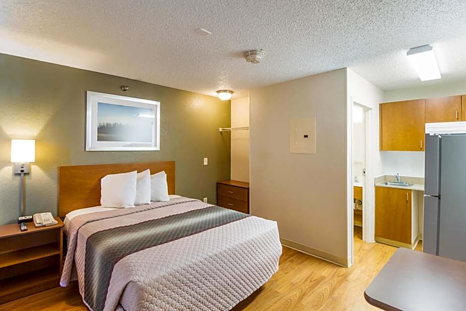 1 Queen-sized bed, kitchen, dining and work area. This room is handicap accessible and nonsmoking.